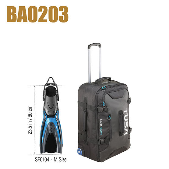 TUSA’s roller dive bags are built durable for all types of travel. Whether it’s a weekend getaway or an extended trip out of the country, TUSA has a bag to suit your needs. The BA0202 is the largest of the TUSA roller bags. The BA0202 is capable of storing a full set of dive gear and still have room for the “extras".