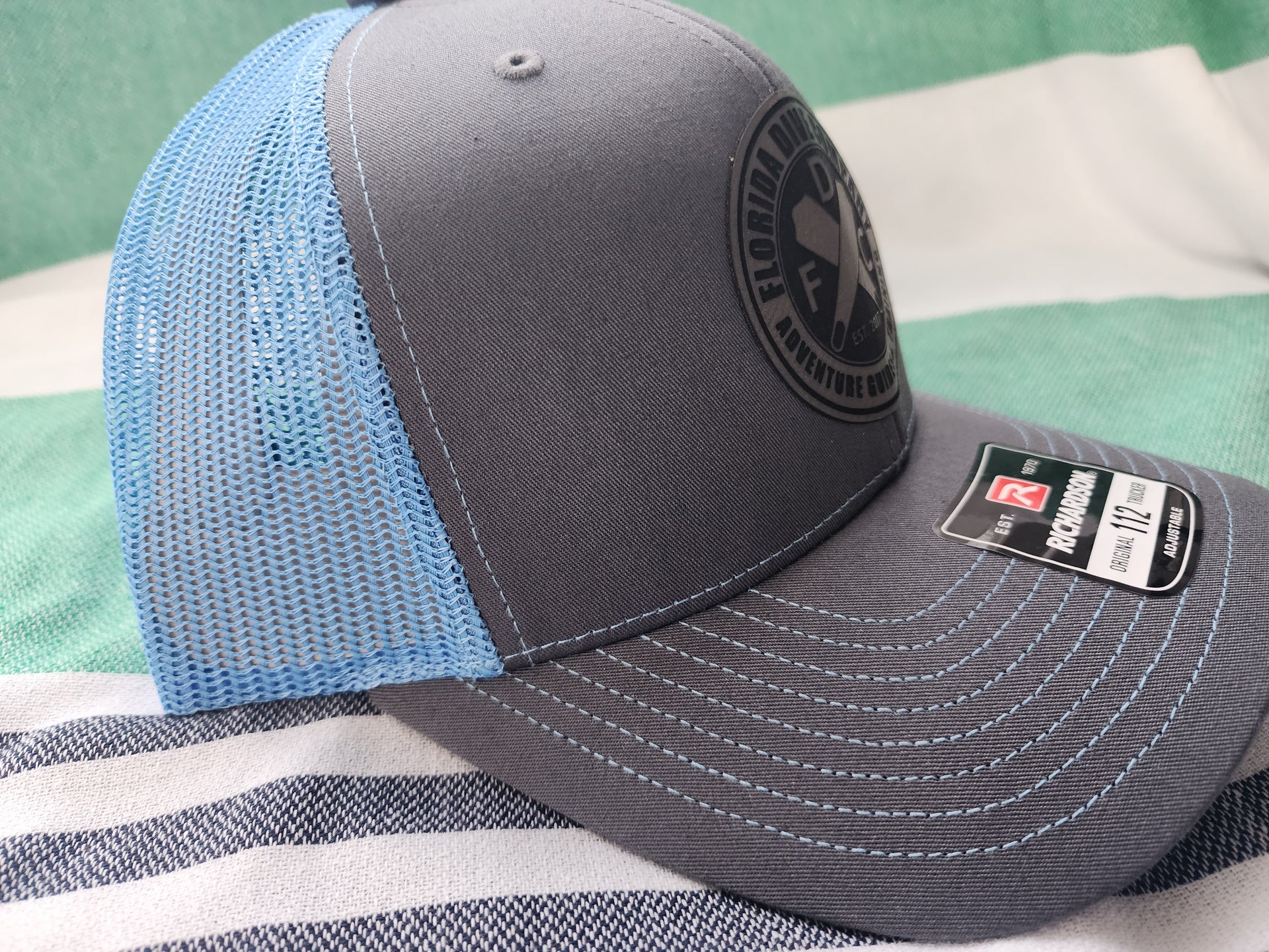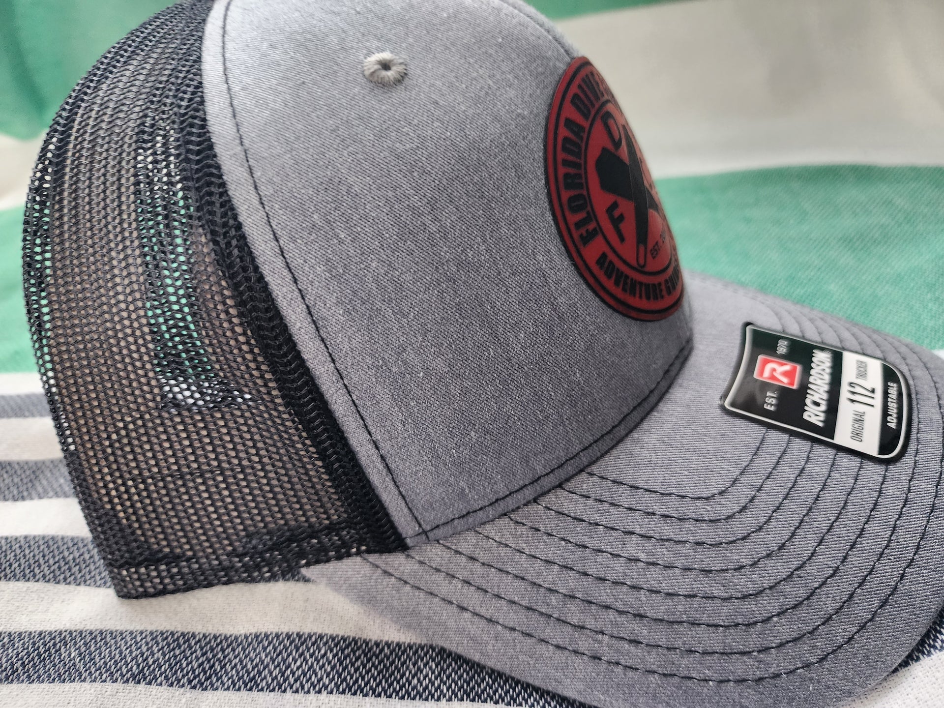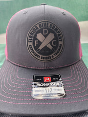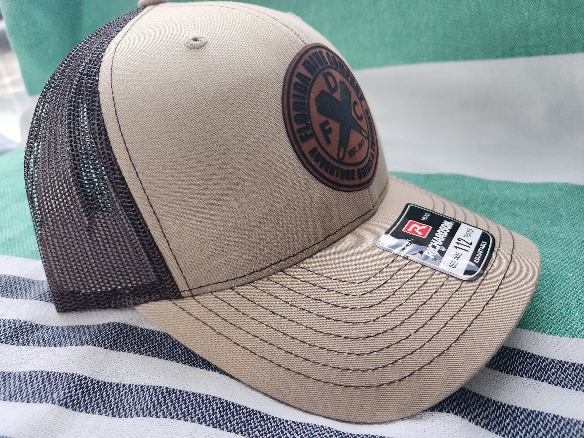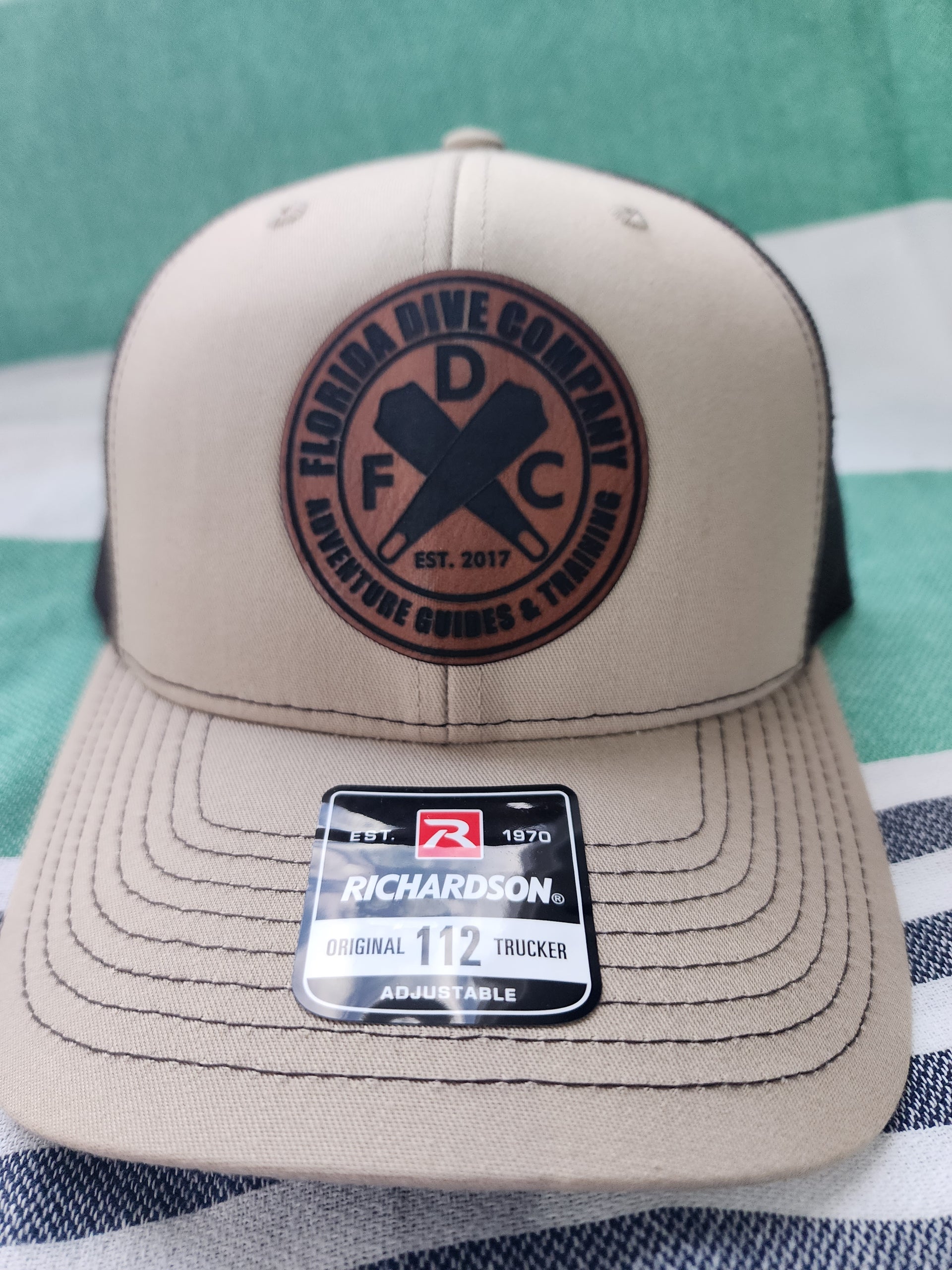 Our Florida Dive Company Leather Patch Hats are built on the ever popular Richardson 112 Snapback Hat. Feachers a round leather patch with the FDC logo and branding.