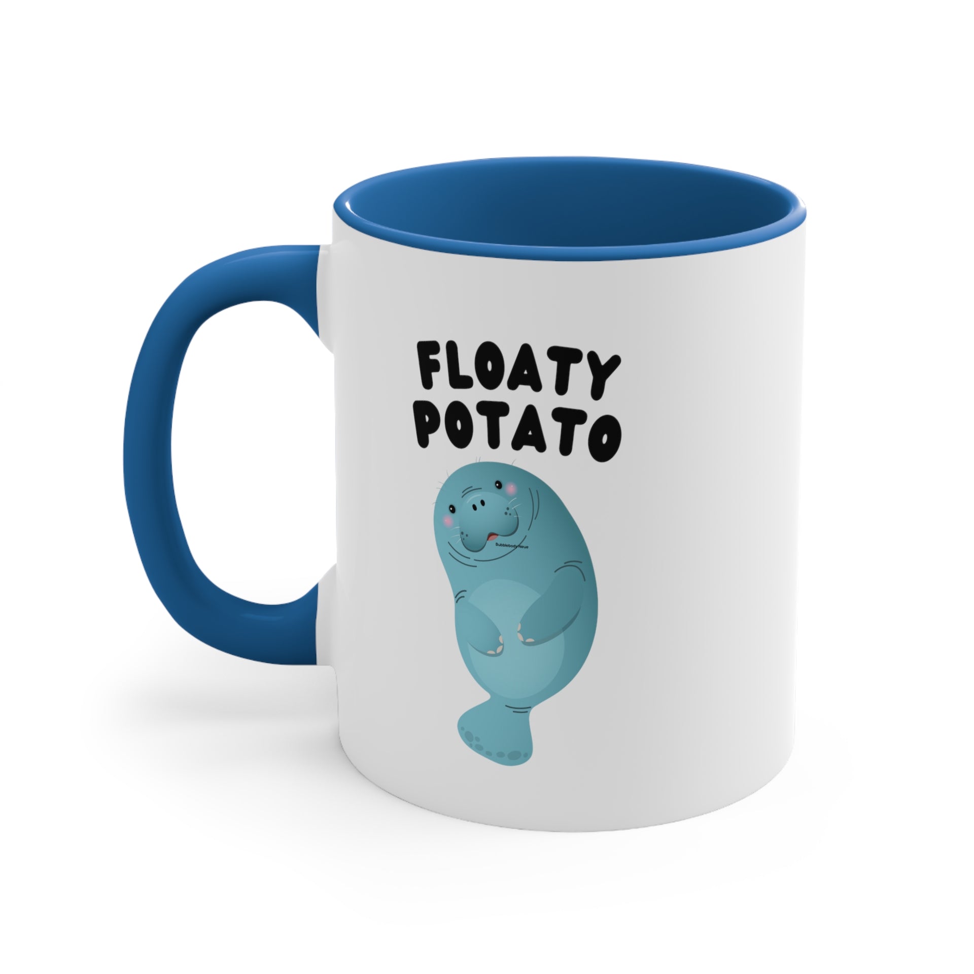 Experience pure delight with our 11oz "Floaty Potato" coffee mug! Embrace the playful charm of our adorable Manatee design, adding a whimsical touch to your daily routine. Crafted from durable ceramic, this mug features vibrant colors against a clean white backdrop, creating a visually appealing aesthetic. Whether you're a coffee, tea, or cocoa lover, enjoy each sip in style. The sturdy handle ensures a secure grip, and the smooth surface allows for easy cleaning. Elevate your mug collection with this unique and lovable design, making every moment a joyful experience.