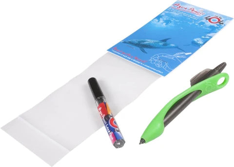 The Aqua Pencil works with existing slate boards, wrist slates, and underwater paper like Wet Notes.