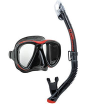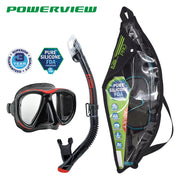 The Powerview dry combo includes a high-quality 2-window mask with enhanced vision, EZ adjust buckle technology, ClearVu tempered glass lens and pure silicone skirt and strap. The dry snorkel features TUSA Hyperdry Elite dry top technology (pat p) that stops water from entering into the snorkel, a drain chamber and purge valve for easy clearing and pure silicone swivel and mouthpiece.