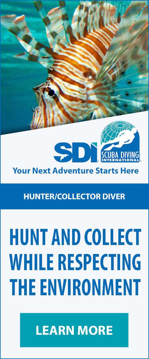 The purpose of this specialty course* is to actively allow the student to engage in the collection of certain marine objects and to demonstrate and explain the necessary rules of underwater hunting. Prudent and conservative techniques of both aspects must be exercised. The Hunter/Collector Diver Course covers the “how-to’s” of hunting and collection of marine life.