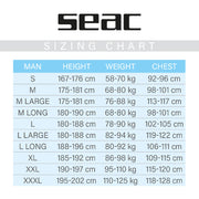 Seac Space is available in different sizes, also calibrated, with specific and dedicated cuts for women and men, for quick and easy dressing even in non-optimal conditions, with high temperatures and high humidity levels as well.