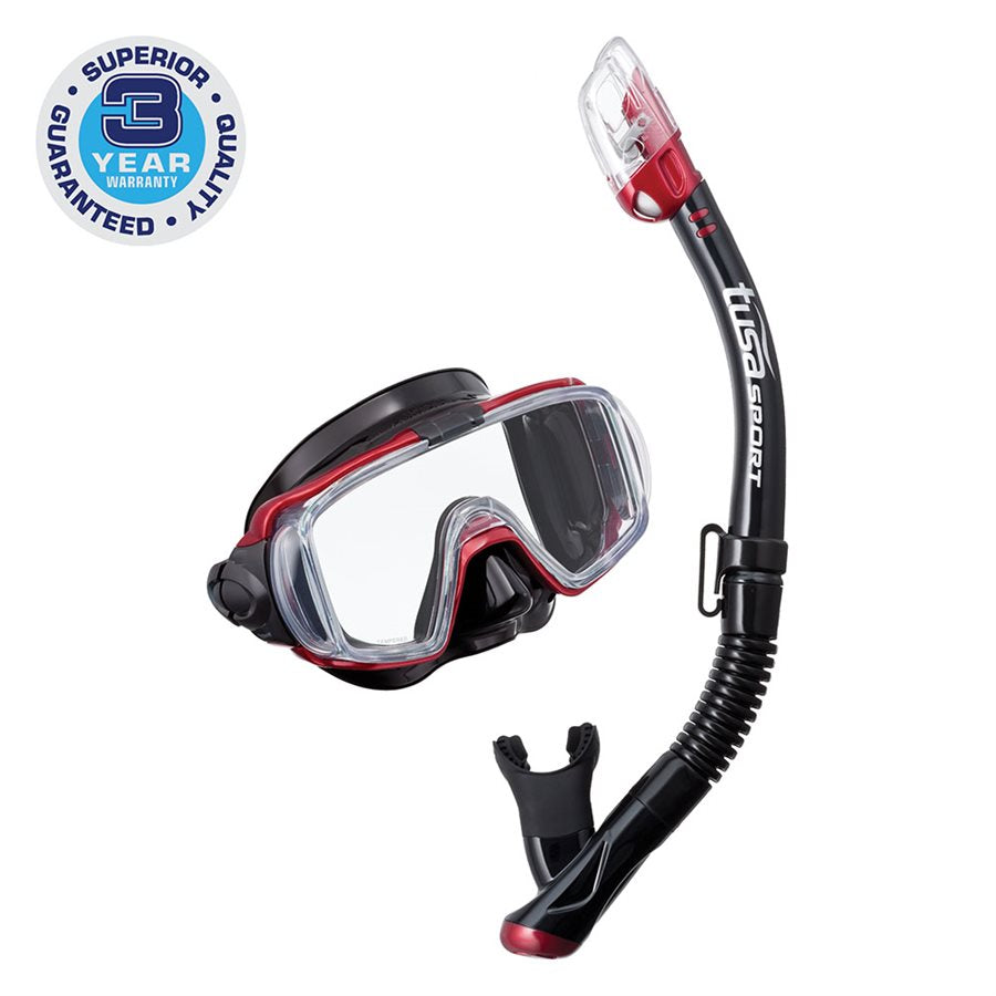 The VISIO TRI-EX adult combo includes the UM-31 Visio Tri-Ex mask and the USP-250 Snorkel. The UM-31 Visio Tri-Ex mask is a revolutionary 3-window design that offers an ultra-wide 168° panoramic view. This amazingly wide viewing angle is achieved by the incorporation of domed side windows and the significant reduction of frame structure around the lenses, increasing the field of vision dramatically over traditional masks. The UM-31 mask gently conforms to the contours of your face. Constructed with Pure Silicone, this mask has been crafted for divers who want a wide front lens combined with a low volume design. The USP-250 dry snorkel features TUSA Hyperdry Elite dry top technology (pat p) that stops water from entering into the snorkel, a drain chamber and purge valve for easy clearing, and silicone mouthpiece. The UC-3125QB is a good match with our UF-21 fins.